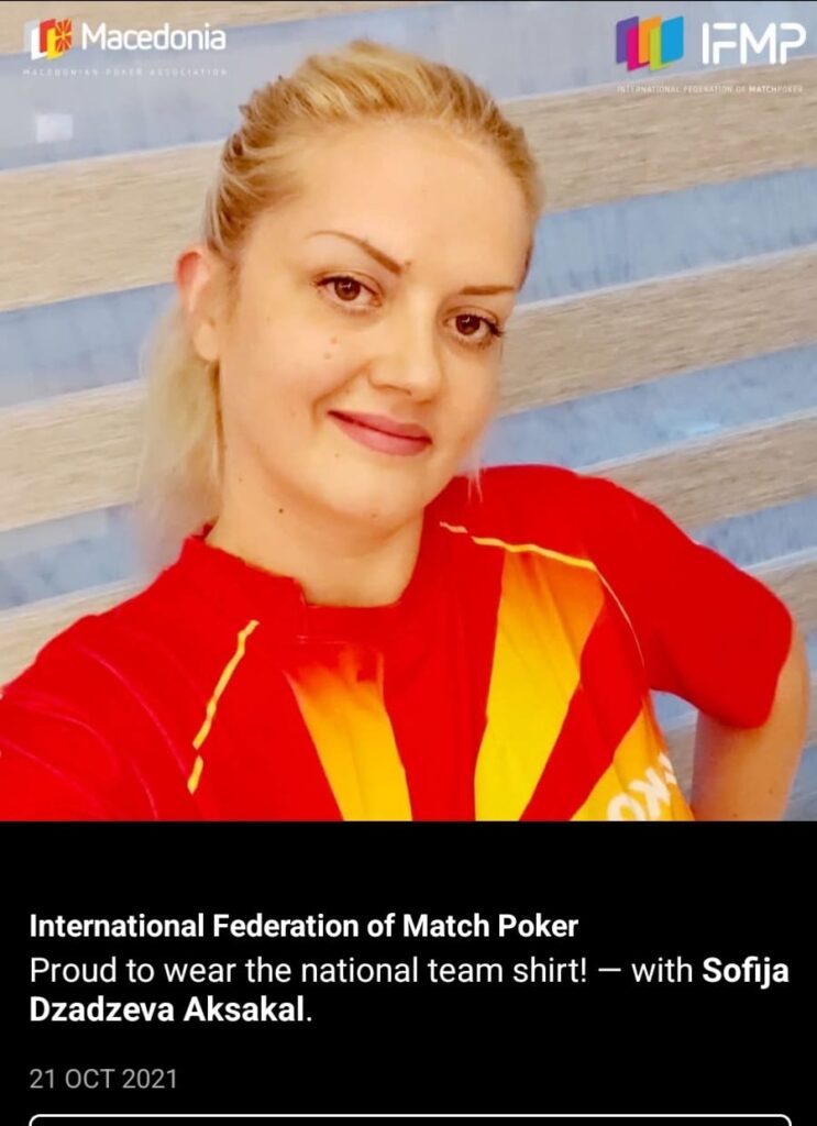 СОФИЈА ЏАЏЕВА АКСАКАЛ два пати женски играч на годината, учесник во баражот за квалификациите 2021 за Светското првенство 2022 година,како и член  на македонската репрезентација на шампионатот во Гевгелија , еден од основачите на женскиот покер клуб Вардар ,Софија е во поширокиот состав од 8 играчи за учество на WCOAP во Нотингем, Англија наредниот август 20-25ти .