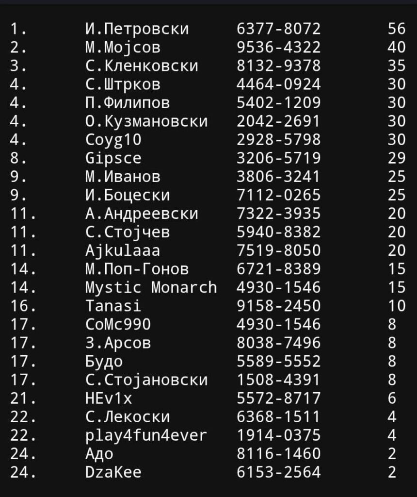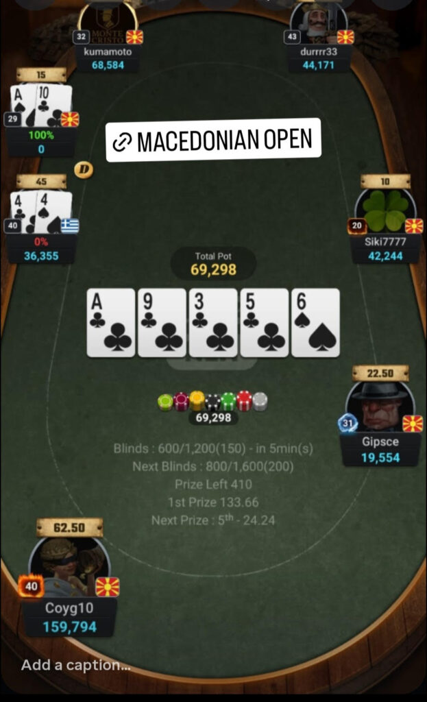 Минатиот четврток се одржа четвртата рунда од серијалот “Macedonian Open” сезона 2025/6, а досега учествуваа рекорден број на учесници 41 и на финалната маса беа забележани играчи од Грција и Австрија. Веќе во недела се очекува бројка од 50тина играчи бидејќи е најавено учество на играчи од Малта и Германија. Досега се одиграа 2 “Progressive bounty” и 2 сателита за главниот настан во Аполонија со гарантиран награден ФОНД од €150.000, идниот месец. Веќе утре ( недела) на програмата е третиот сателит за Аполонија со ГАРАНТИРАН тикет во вредност од €350,но со оглед на зголемениот интерес ,можно е утре да бидат доделени два тикета. До 23ти ноември имаме уште 5 сателити (секоја недела) кои исто така се рангирани за Macedonian Open”, a најдобриот после одиграни 56 турнира ќе биде дел од Македонската селекција за наредниот WCOAP2026 во Нотингем, Англија идното лето, а предвидени се награди за топ10 !